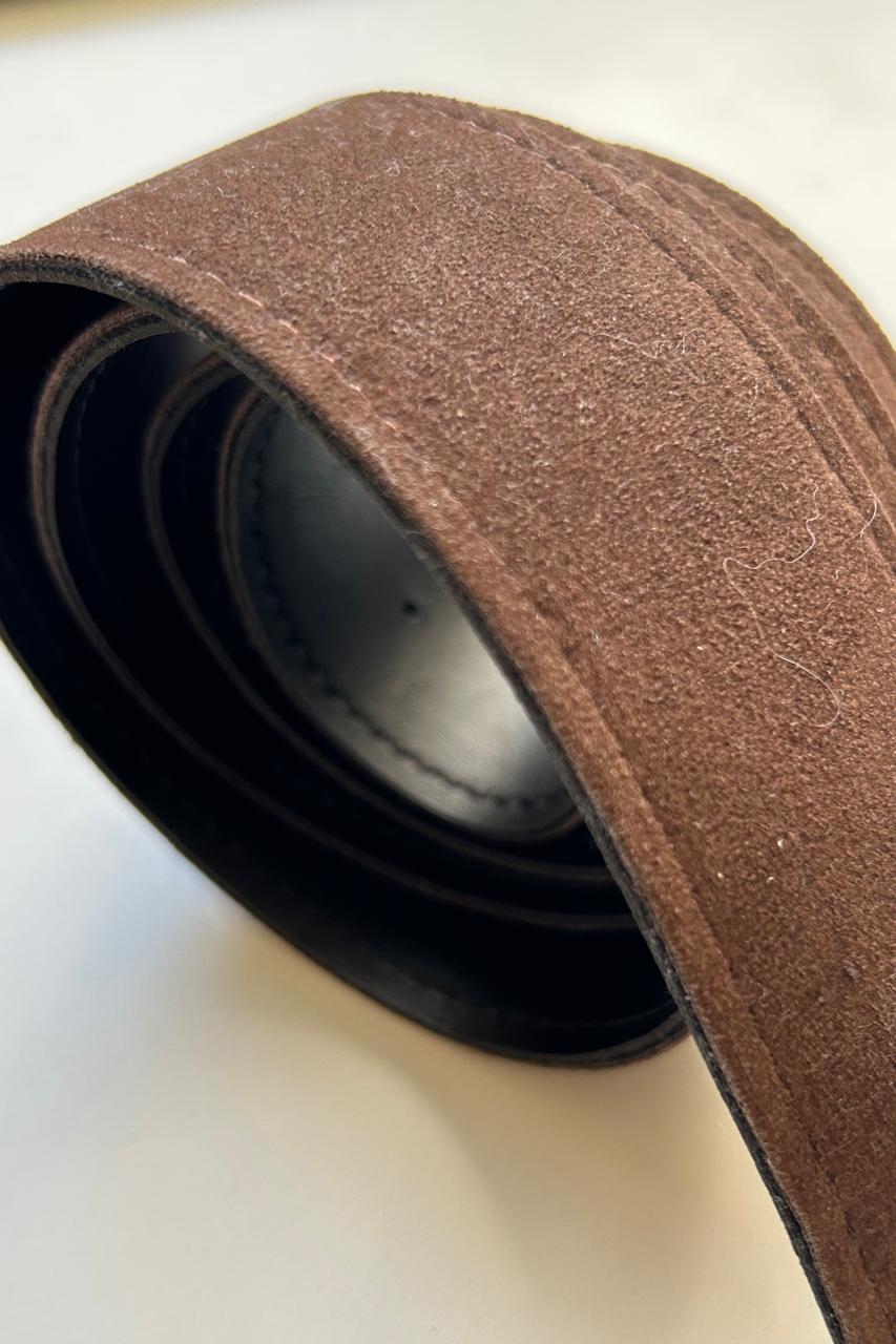 Textura y distinción en un accesorio clave. Nuestro cinturón Duna está diseñado para ser el marco perfecto de tu silueta. Confeccionado con un acabado gamuzado premium en un profundo tono chocolate, esta pieza combina la robustez de un accesorio duradero con la suavidad de una textura orgánica.